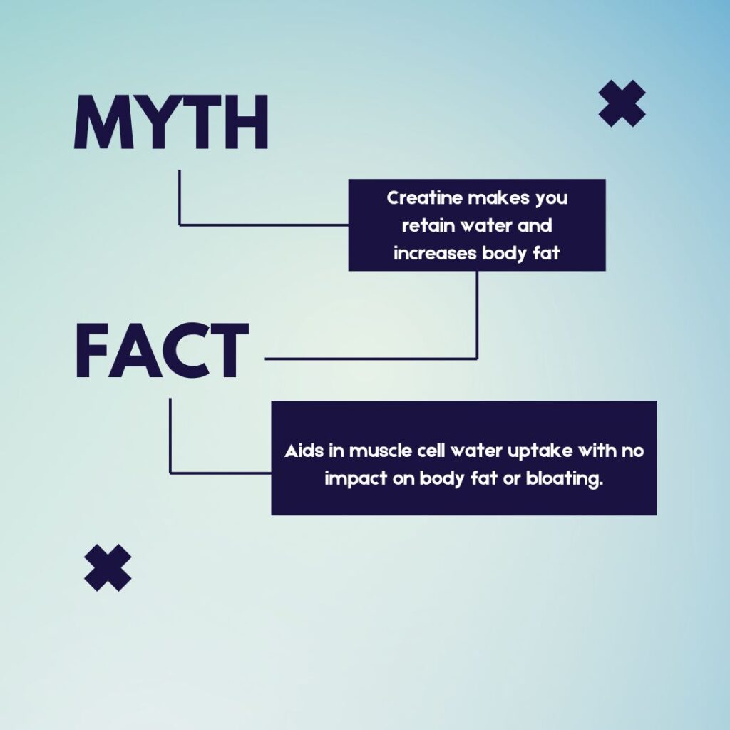- Η Κρεατίνη Είναι Μόνο για Αθλητές Σωματικής Δύναμης Ένας από τους μεγαλύτερους μύθους είναι ότι η κρεατίνη είναι χρήσιμη μόνο για τους αθλητές που ασχολούνται με τη δύναμη ή την ενδυνάμωση. Ωστόσο, μπορεί να ωφελήσει και αθλητές αντοχής, όπως δρομείς ή ποδηλάτες, καθώς συμβάλλει στην αποκατάσταση και στην παραγωγή ενέργειας κατά τη διάρκεια των προπονήσεων.